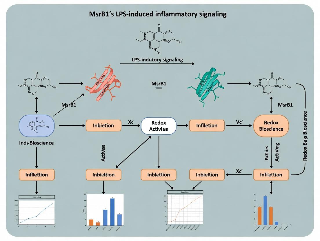 MsrB1 emerges as a pivotal, enzymatically specific regulator within the complex network of LPS-induced inflammation, acting not merely as a passive antioxidant but as an active repair enzyme for oxidatively damaged signaling proteins. Foundational studies establish its mechanism, while methodological advances enable precise interrogation of its function. Overcoming technical challenges is crucial for robust data, and comparative validation solidifies its unique position alongside broader antioxidant systems. The integration of findings across intents strongly supports MsrB1 as a master regulator that dampens key pro-inflammatory pathways (NF-κB, NLRP3) by controlling the redox state of critical methionine residues. Future directions must focus on translating this knowledge: developing highly specific MsrB1 activators or mimetics as novel anti-inflammatory therapeutics, exploring its role in trained immunity and inflammatory memory, and validating MsrB1 activity or methionine sulfoxide profiles as biomarkers for sepsis severity and response to therapy. Ultimately, targeting the MsrB1 pathway represents a promising, mechanism-based strategy to modulate dysregulated inflammation while preserving essential immune function.