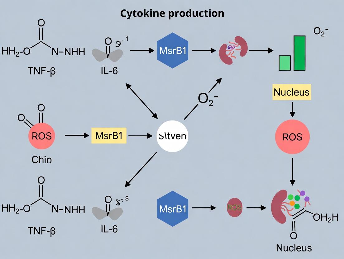 Methionine sulfoxide reductase B1 (MsrB1) is a selenium-containing enzyme critical for the reduction of methionine-R-sulfoxide residues in proteins. Within the framework of a broader thesis investigating the effects of MsrB1 deficiency on cytokine production, this whitepaper positions MsrB1 as a central regulatory node in cellular redox signaling networks. MsrB1 deficiency disrupts redox homeostasis, leading to aberrant activation of signaling pathways such as NF-κB, MAPK, and Nrf2, which in turn dysregulates the production of key cytokines (e.g., TNF-α, IL-1β, IL-6). This disruption provides a mechanistic link between impaired redox repair and inflammatory disease states, offering novel targets for therapeutic intervention.